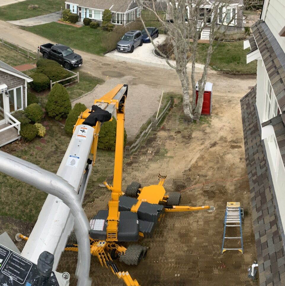 Kennedy Painting has a Haulotte 45XA Boom lift that is extremely versatile and gets us safely to tough to reach areas, no ladder needed. We use the lift for flag poles, properties that present 3 stories of work, , church steeples, roof decks, and widow's walks, just to name a few. Our lift wheels leave little to no marking so we are able to use it often on residential and commercial projects without disturbing landscaping, saving our customers time and money.